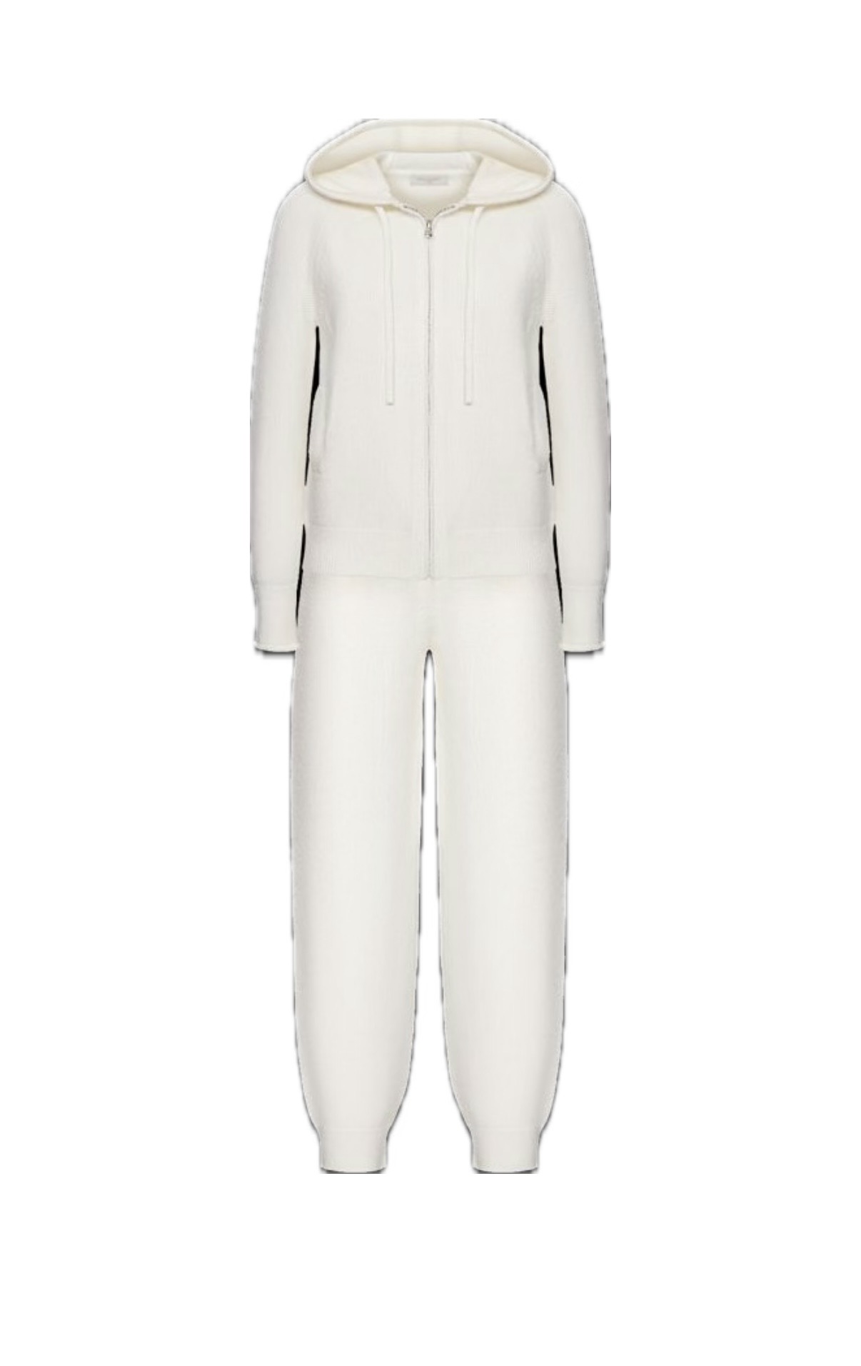 Комплект кардиган на молнии с капюшоном и брюки зауженные из кашемира, белый