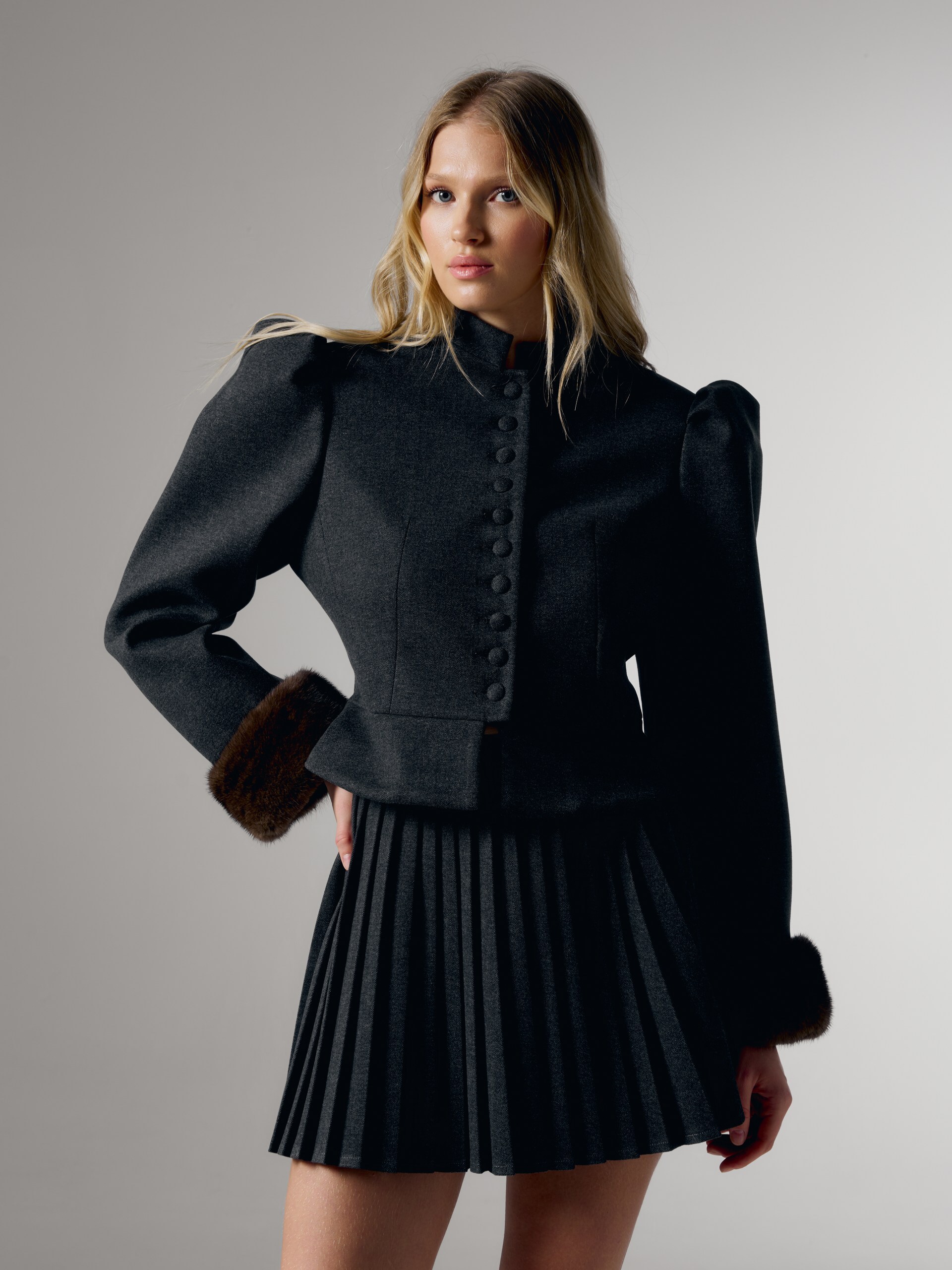 Жакет Winter c норкой, серый
