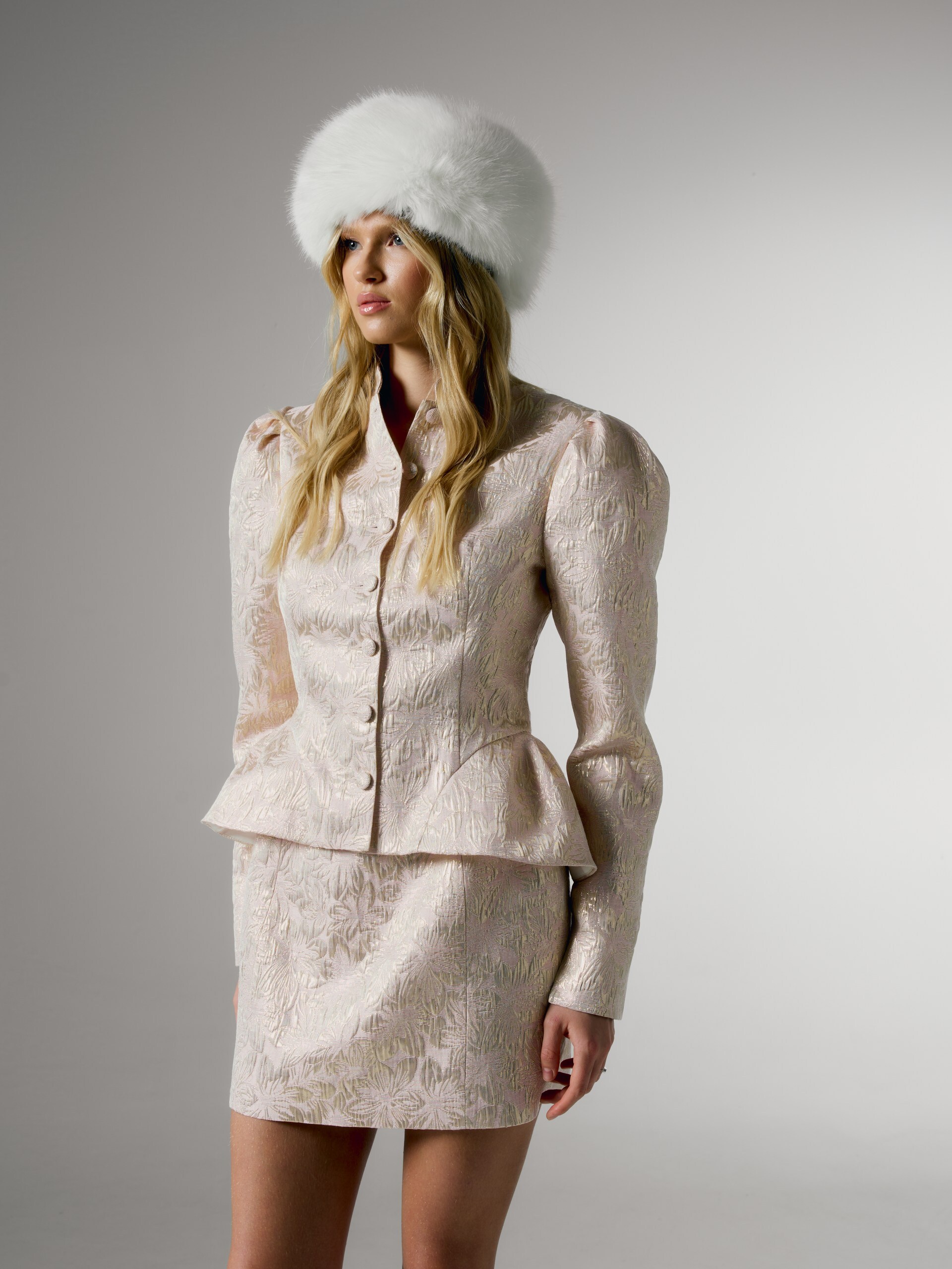Жакет приталенный с баской и шарфом base, ванильный