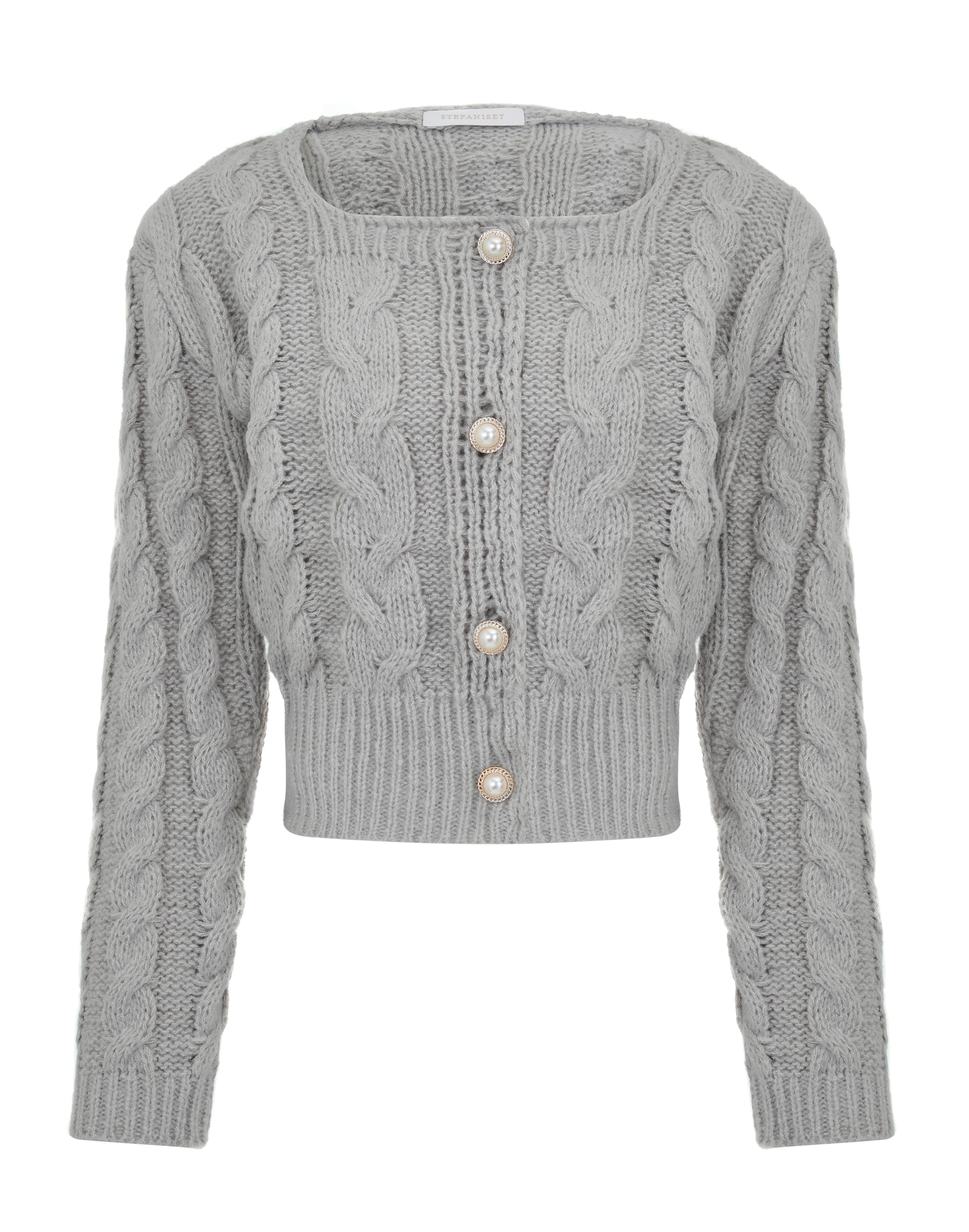 Жакет крупной вязки с пуговицами, серый