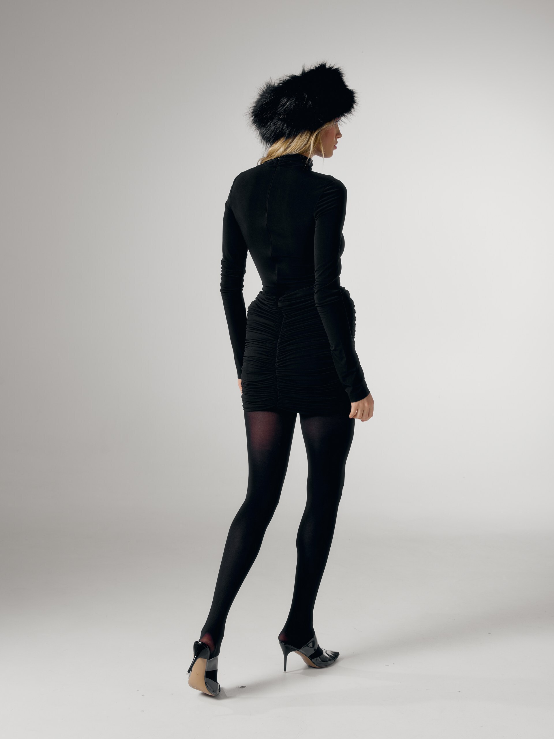 Платье с буфами и высоким горлом, черный